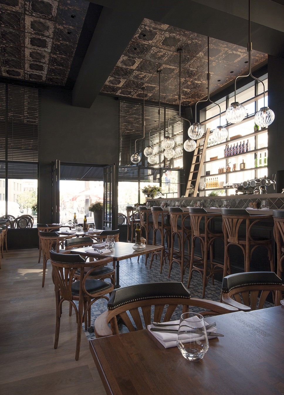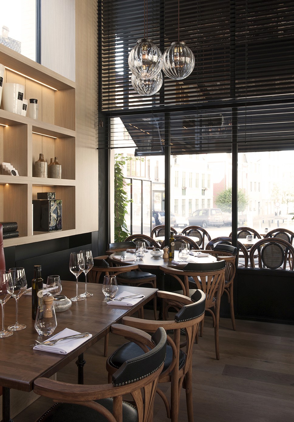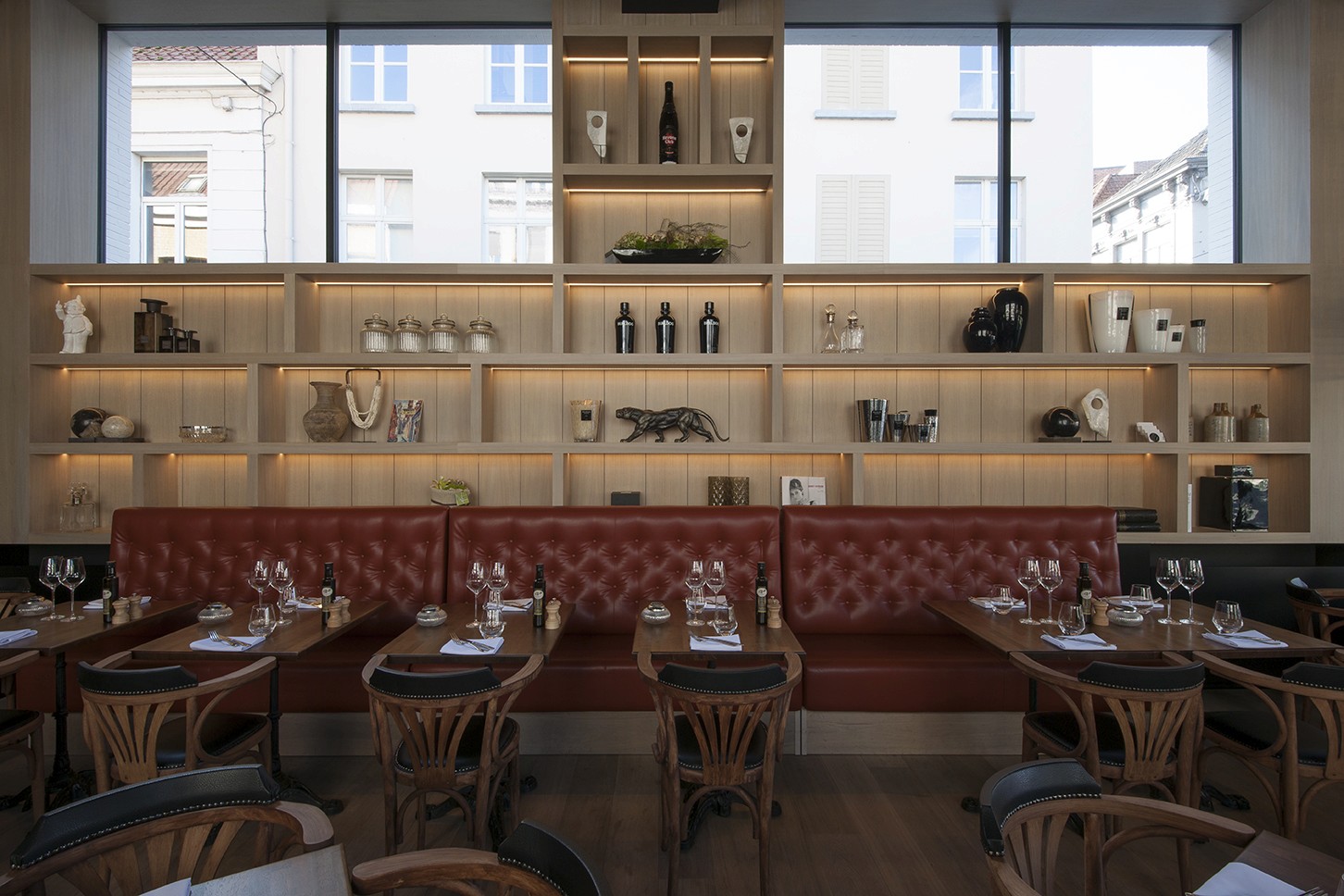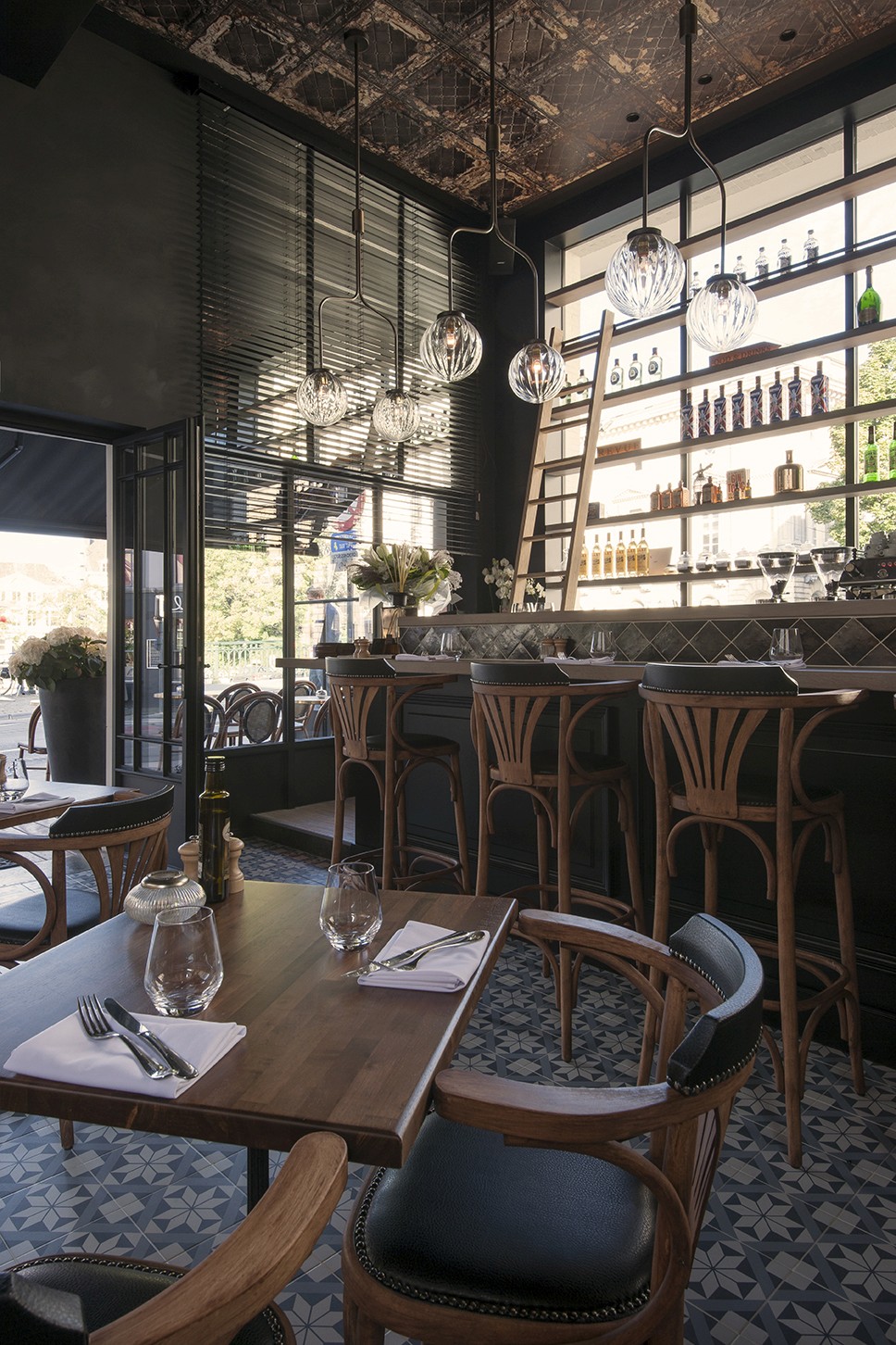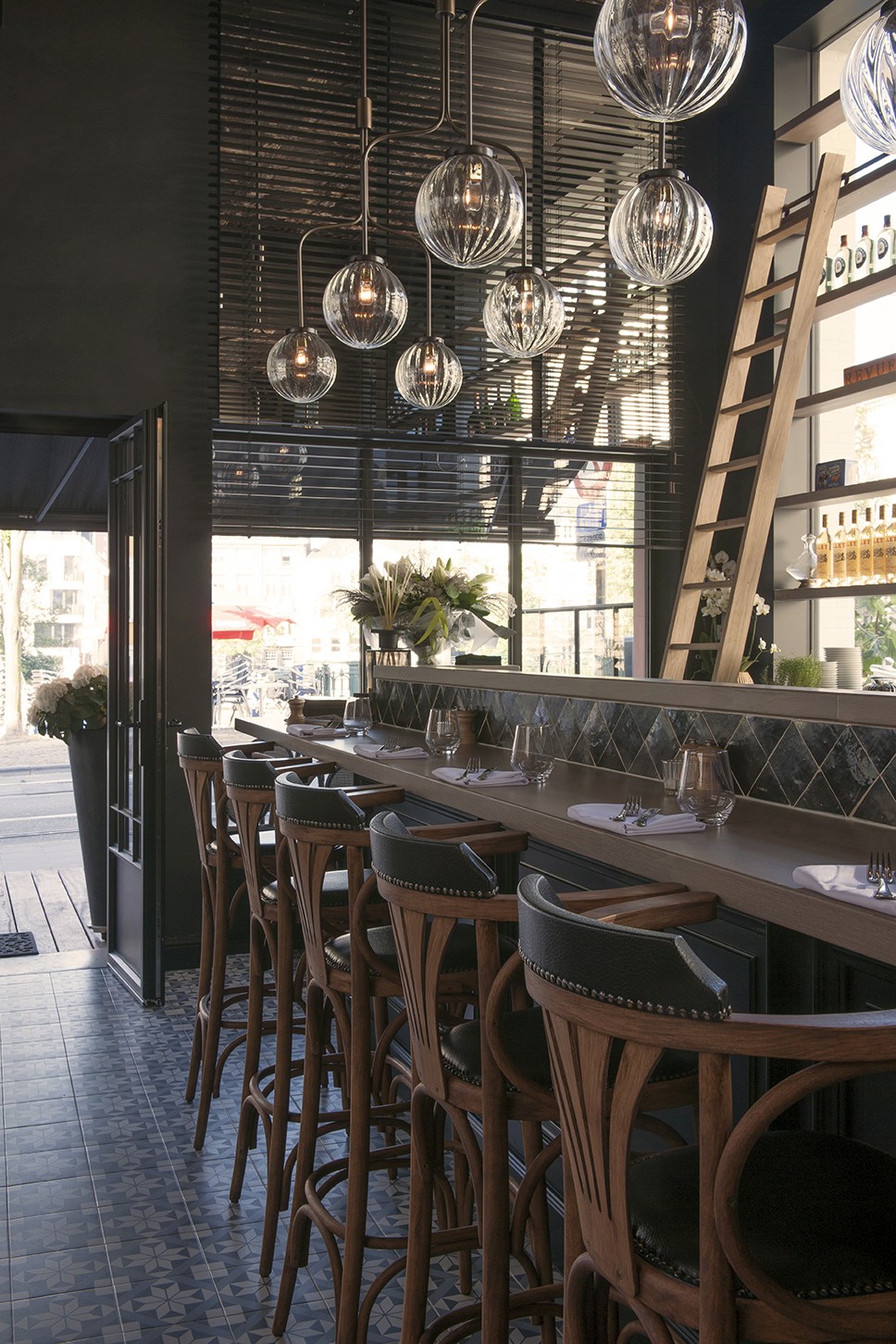 Voor Restaurant Revue in Gent verzorgde Sonneville Decorateurs, in opdracht van Interieurbureau Wille, het volledige schilderwerk.
