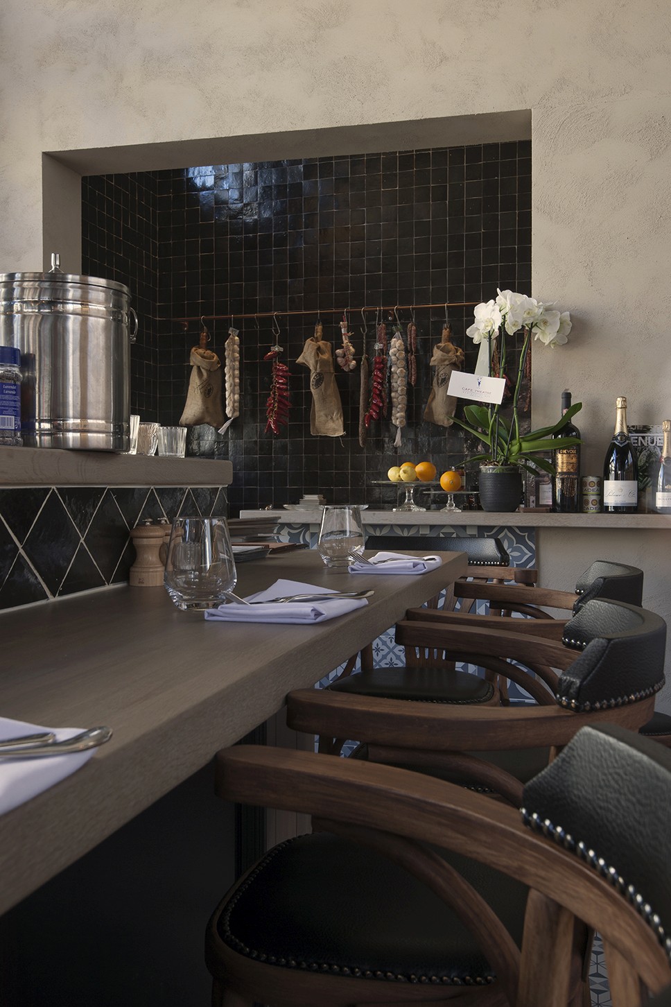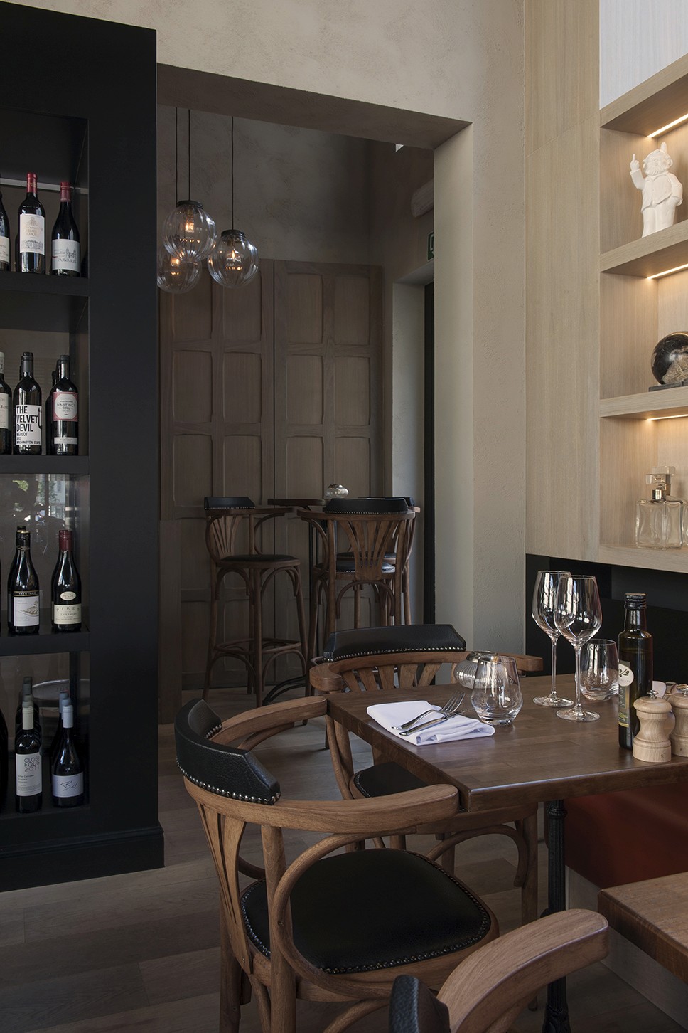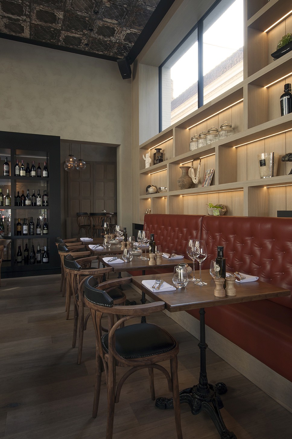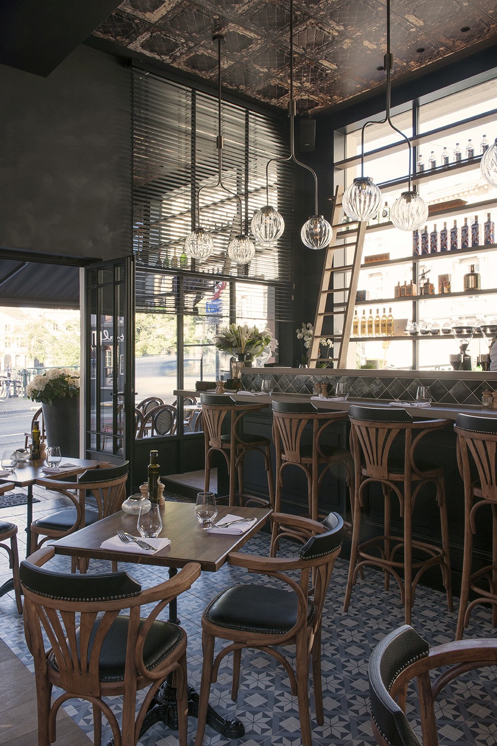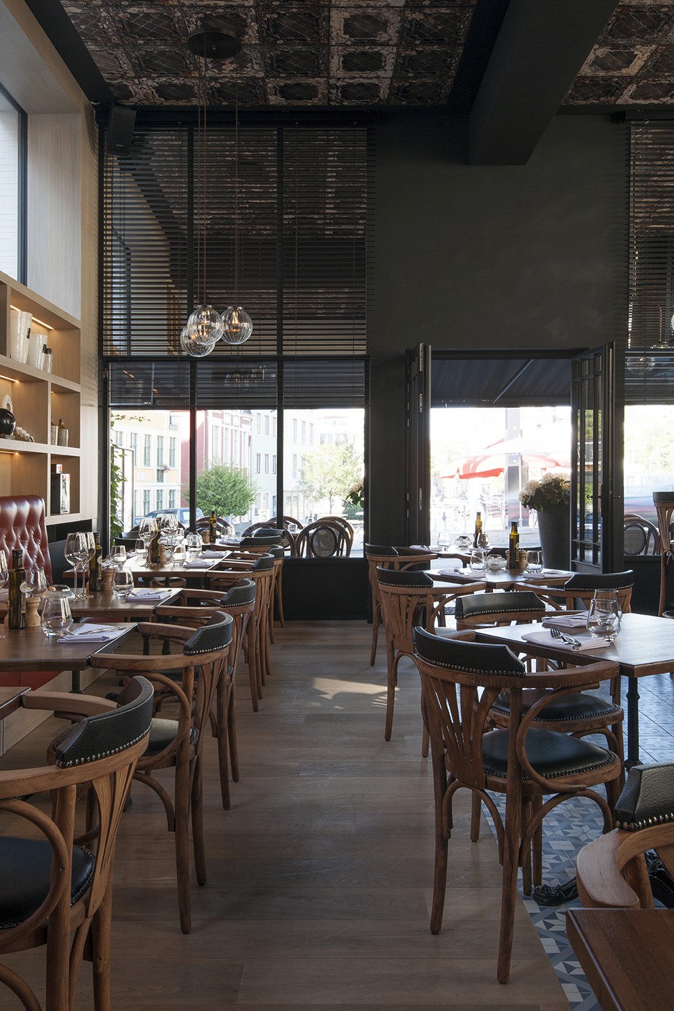 Voor Restaurant Revue in Gent verzorgde Sonneville Decorateurs, in opdracht van Interieurbureau Wille, het volledige schilderwerk.